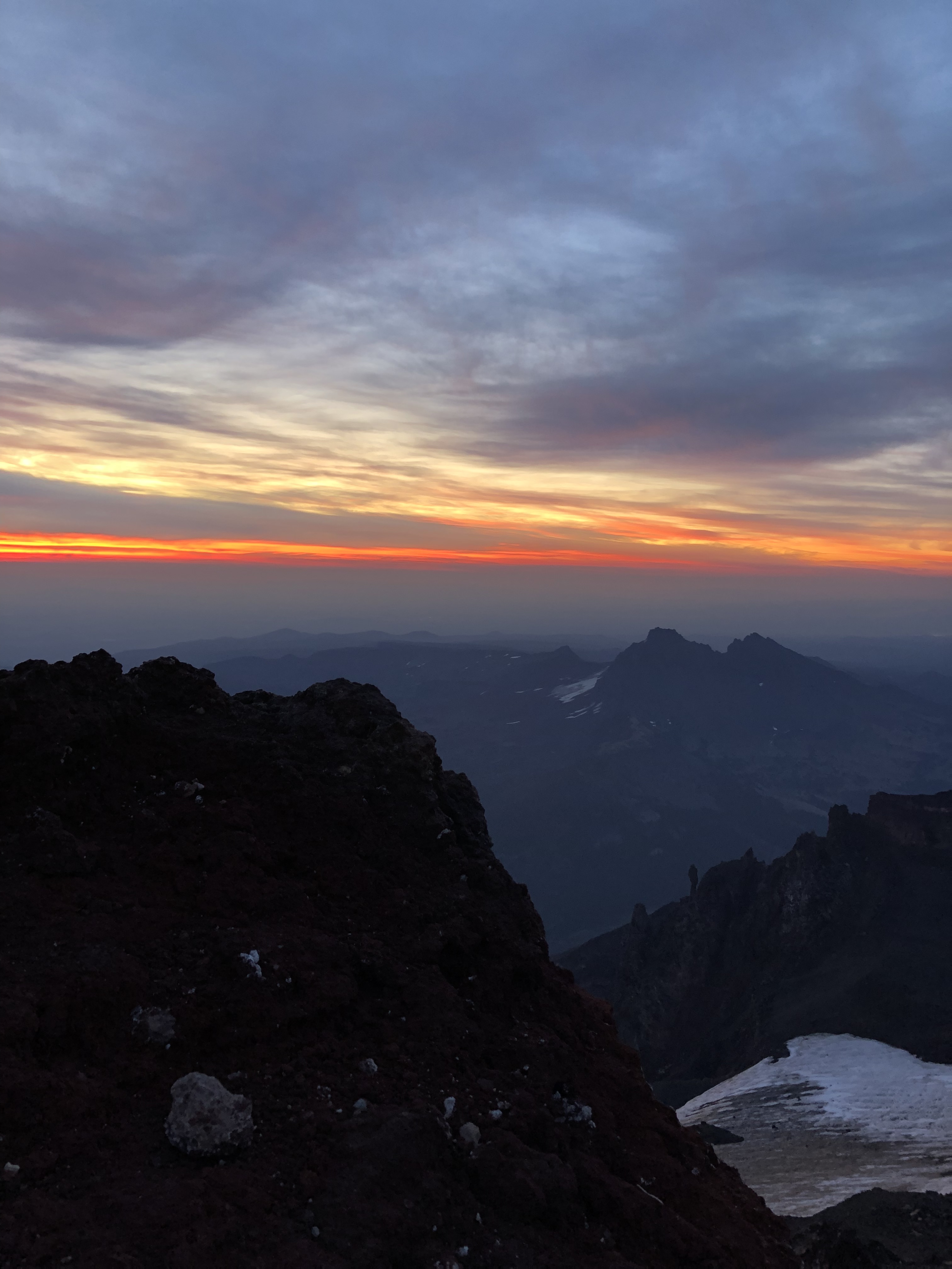 Once we made our way around, we found the best spot to watch the sun come up. It was extremely cold and the wind was treacherous, but the view made it all worth it. The sun was to start rising at 6:35am and we were seated front row by 6:15am. Four grueling hours of hiking the third tallest mountain in Oregon, in complete darkness, made sitting down and watching the world come to life magical.
